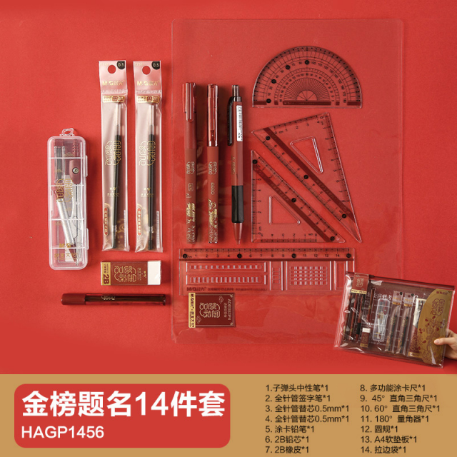 晨光文具孔庙祈福系列考研学习文具套装金榜题名0.5黑色碳素笔涂卡套尺铅笔学生中考高考大礼包四六级公务员 金榜题名考试14件套