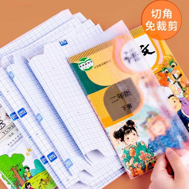 得力书皮包书膜书皮纸包书皮自粘透明磨砂加厚16K小学生一年级书壳全套塑料防水课本保护套 中号10张(送课程表*1+12枚姓名贴)
