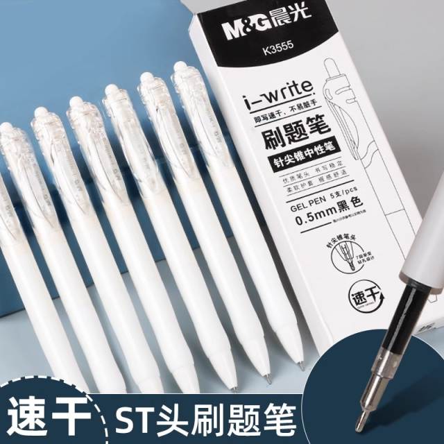 晨光按动中性笔K35高颜值刷题笔水笔学生考试专用0.5mm碳素黑签字笔按压式子弹头圆珠笔黑笔老师办公文具用品 5支速干刷题笔